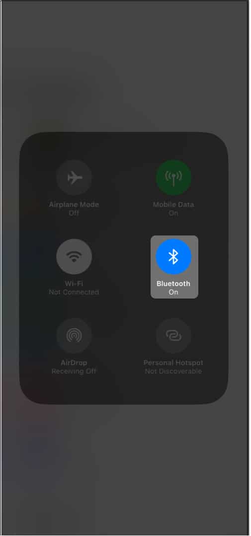 または、開くことができますコントロールセンターそして、Bluetoothを確保しますタイルは青です。