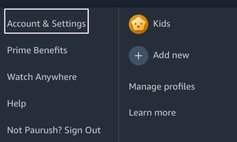 2。メニューから、クリックしますサインアウト現在ログインしているAmazon Primeアカウントからサインアウトします。