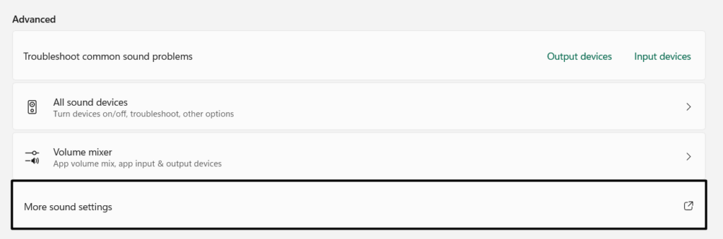2。で音ウィンドウ、選択ボリュームミキサー下高度なサウンド設定にアクセスします。