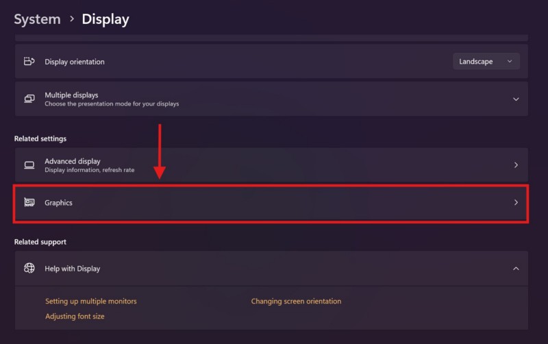 3。次のページを下にスクロールして、を見つけますグラフィックオプションそしてそれをクリックして開きます。
