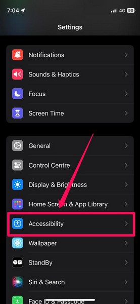 2。を見つけますアクセシビリティリストの設定とタップして開くようにします。