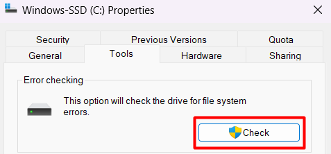 4。さて、に向かいますツールセクションとクリックしますチェックの下エラーチェックセクション。