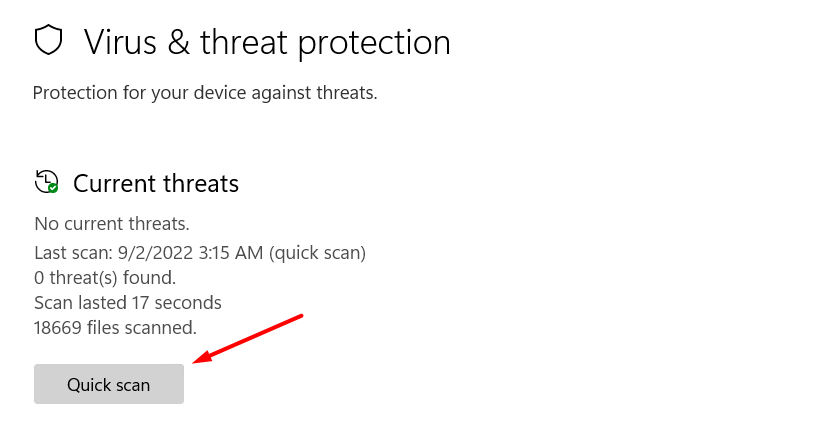 ウイルスとマルウェアは、BSODエラーの根本原因でもあります。したがって、システムがウイルスフリーであることを確認することが重要になります。通常のウイルスまたはマルウェアスキャンを実行することが不可欠です。統合されたウイルスと脅威保護ツールを使用して、これを確実にすることができます。上記の手順で同じことを示しました。