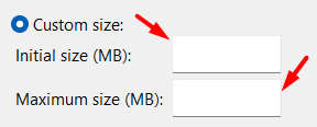 5。次に、にメモリの量を入力します初期サイズそして最大サイズテキストボックス。