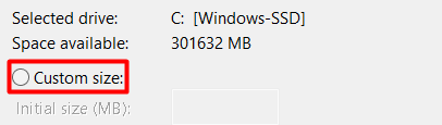 5。その後、を確認してくださいカスタムサイズチェックボックス。