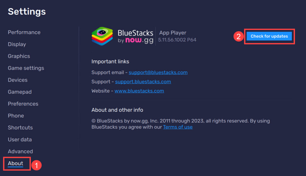 Bluestacksが機能しているが、Windows 11で断続的にクラッシュし続ける場合は、最新バージョンに更新してみてください。これを行うには、次の手順に従ってください。