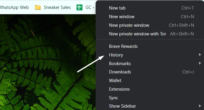 1。開きます勇敢なプログラムWindowsシステムで押しますCtrl + hを開く歴史タブ。