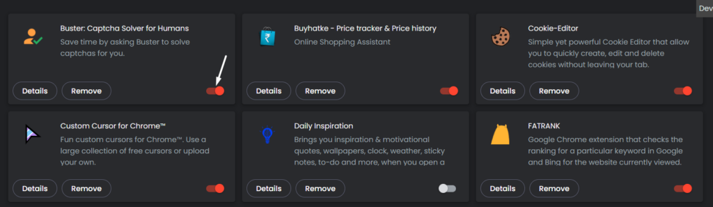 3。完了したら、問題の問題が修正されているかどうかを確認します。まだそこにある場合は、他の拡張機能を無効にし続け、そうしている間に問題のステータスを確認してください。