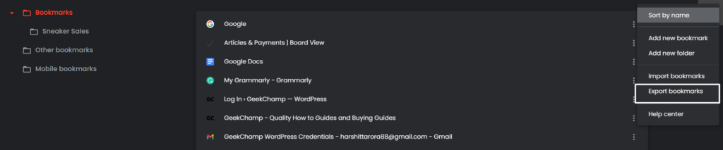 3。クリックしてください3つのドット(…)右上隅で選択しますブックマークのエクスポートメニューから。