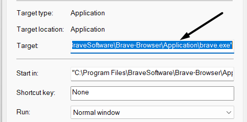 C:Program FilesBraveSoftwareBrave-BrowserApplicationbrave.exe” --incognito –