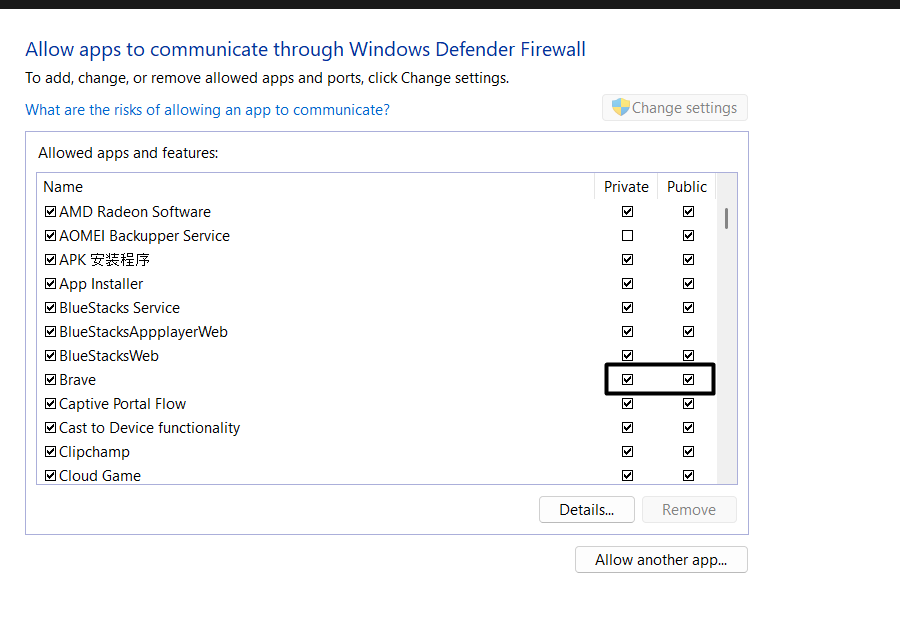 その場合、お勧めしますWindowsのディフェンダーファイアウォールを勇敢に通過しますインターネットを使用してWebにアクセスする許可があることを確認します。以下の手順に従って、組み込みのファイアウォールを通してそれを許可することができます。