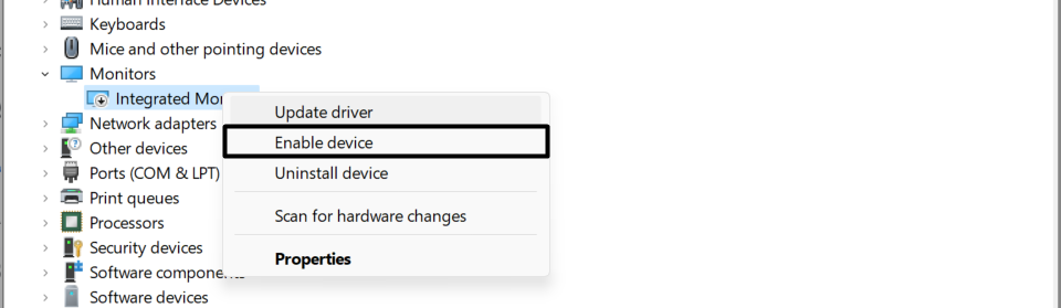 4。ドライバーが無効になったら、同じドライバーを右クリックしますもう一度選択してくださいデバイスを有効にします統合されたモニタードライバーを再度可能にします。
