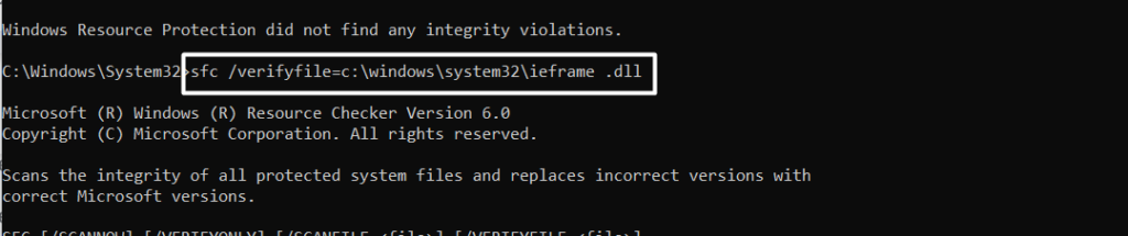 sfc /verifyfile=c:windowssystem32ieframe .dll