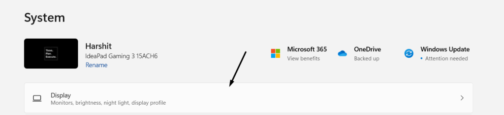1。開始するには、設定アプリを開きますPC上で、に移動します画面すべてのディスプレイ関連設定にアクセスするセクション。