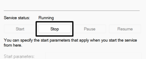 5。サービスが停止したら、をクリックします始める再起動するオプション拡張サービスを表示しますシステム上。