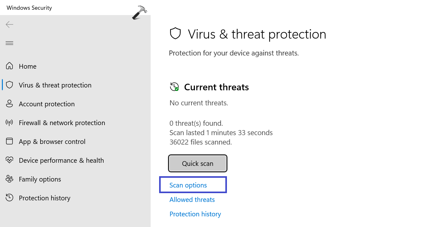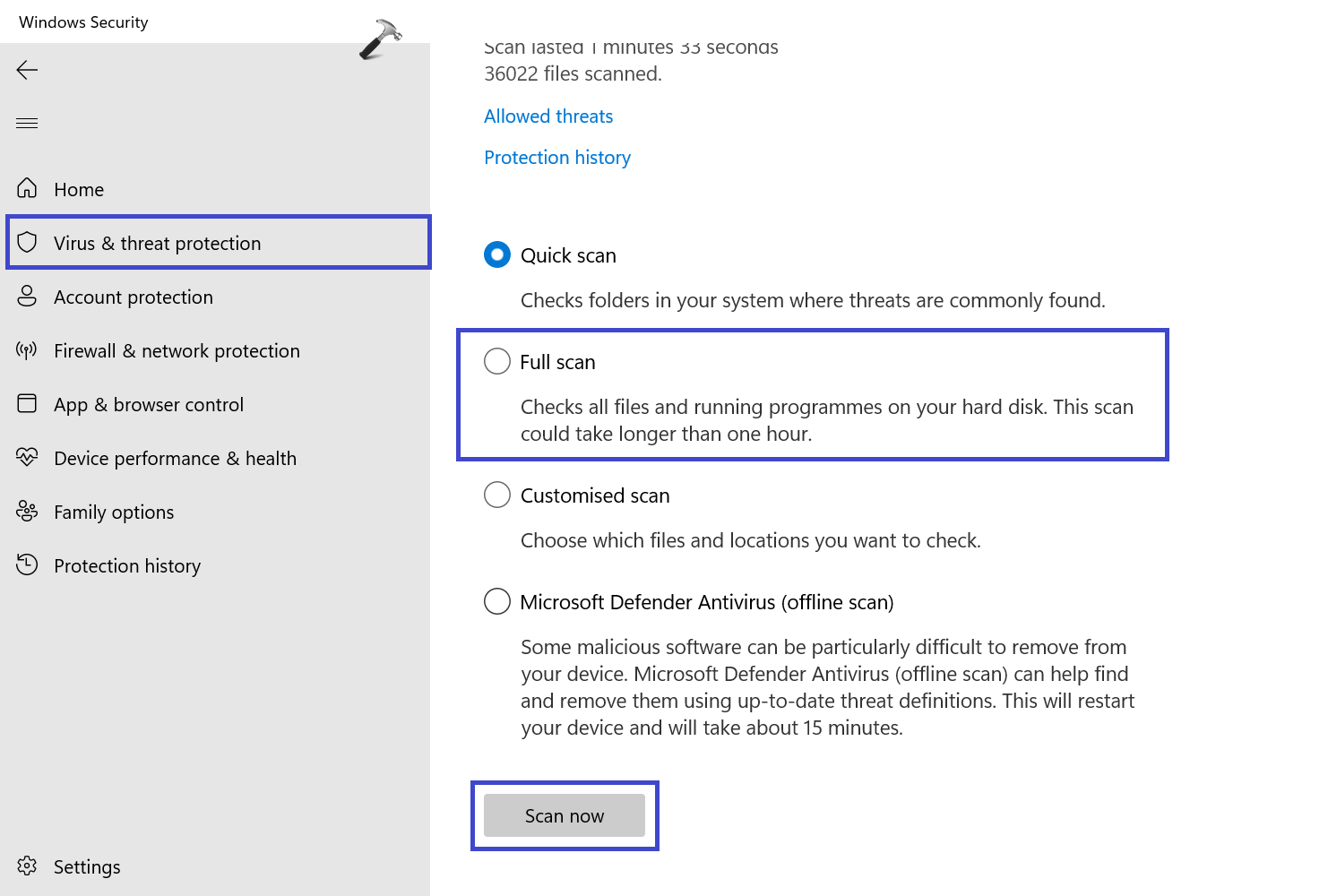 4。「」を選択しますフルスキャン」システムを確認するオプション。このスキャンは、デバイスに保存されているデータに応じて時間がかかる場合があります。