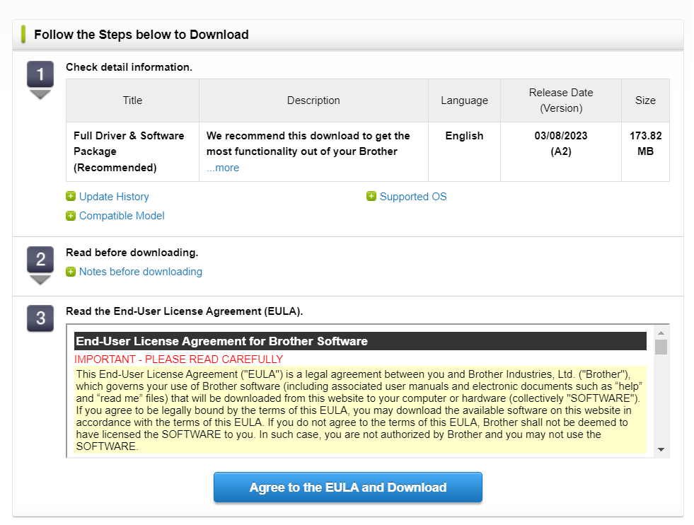 3。で完全なソフトウェアパッケージセクション、選択フルドライバーとソフトウェアパッケージ(推奨)。