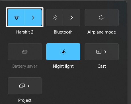 2。クイックアクションセンターでクリックします飛行機モードWindows 11コンピューターで有効にします。