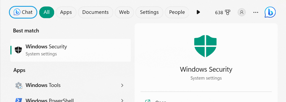 1。起動しますWindowsセキュリティ ユーティリティWindows PCでWindows検索ボックス。