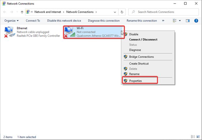 3。次の画面で、Wi-Fiネットワークを右クリックして選択しますプロパティメニューから。