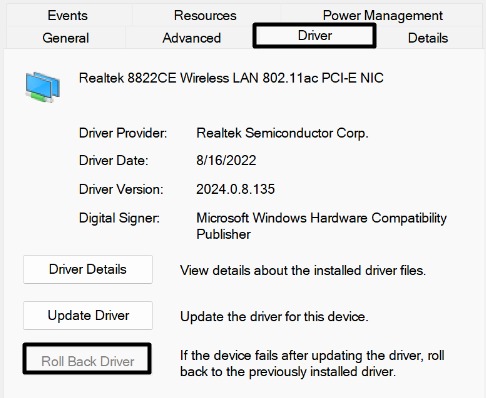 4。ネットワークアダプターが以前のバージョンにロールバックしてから、問題のステータスを確認するのを待ちます。
