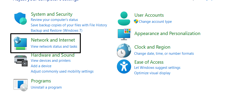 1。開きますコントロールパネルユーティリティWindows 11 PCで行きますネットワークとインターネット。