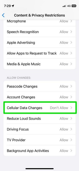 5.画面時間に携帯電話データの変更が許可されていることを確認してください