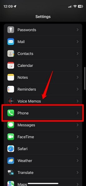 2。を見つけます電話リストのオプションをタップして開くようにします。
