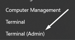 1。を右クリックしますスタートメニュータスクバーで、を選択しますターミナル(管理者)それからオプション。