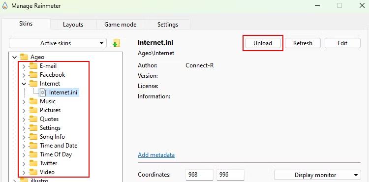 ステップ3:アクティブな肌の各コンポーネントについて、クリックしますアンロード。