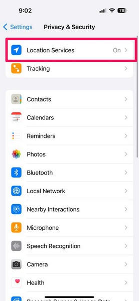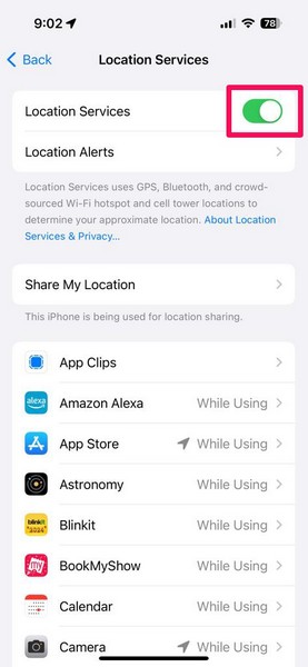 4。ここでは、確認してくださいロケーションサービスのトグルオプションが有効になっています。