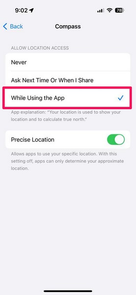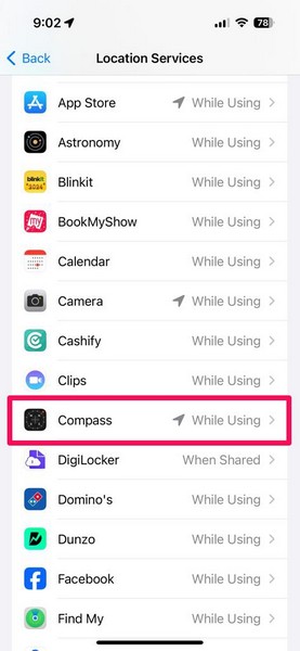 この場合、iPhoneとコンパスアプリでもロケーションサービスが有効になっていることを確認する必要があります。下の手順に従って、デバイスでそれを行うことができます。