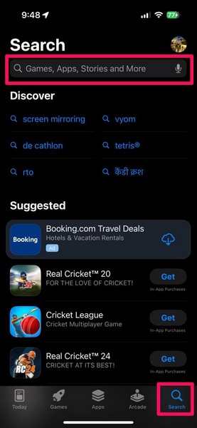 6。に行きます[検索]タブその後検索バーを使用しますコンパスアプリを見つけるため。