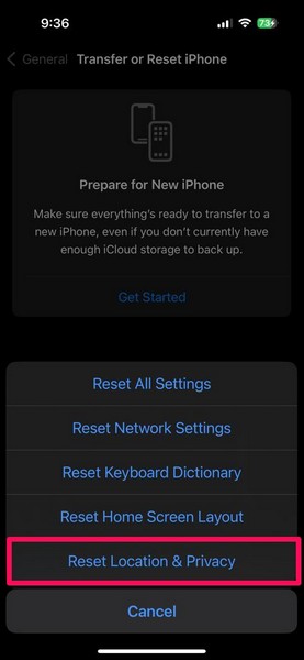 iPhoneでコンパスが機能しない問題を経験したときに試すことができるもう1つの効果的な修正は、場所とプライバシーの設定をリセットすることです。この方法は、iOSデバイスの場所とプライバシー機能のすべての変更を本質的に消去し、コンパスアプリをリセットします。