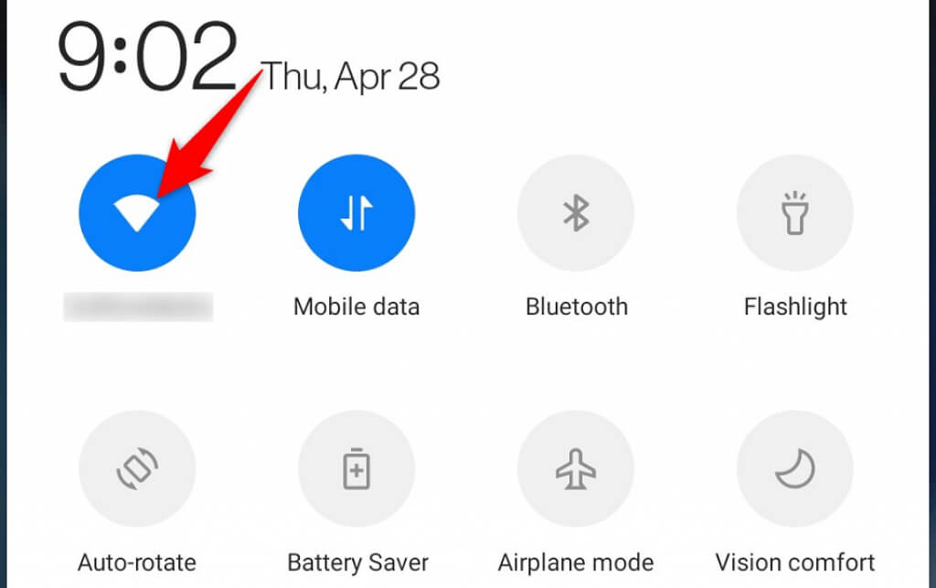 モバイルデータを使用している場合は、携帯電話の画面の上部からスワイプダウンして、ロングプレスWi-Fiアイコン、およびWi-Fiネットワークに参加します。
