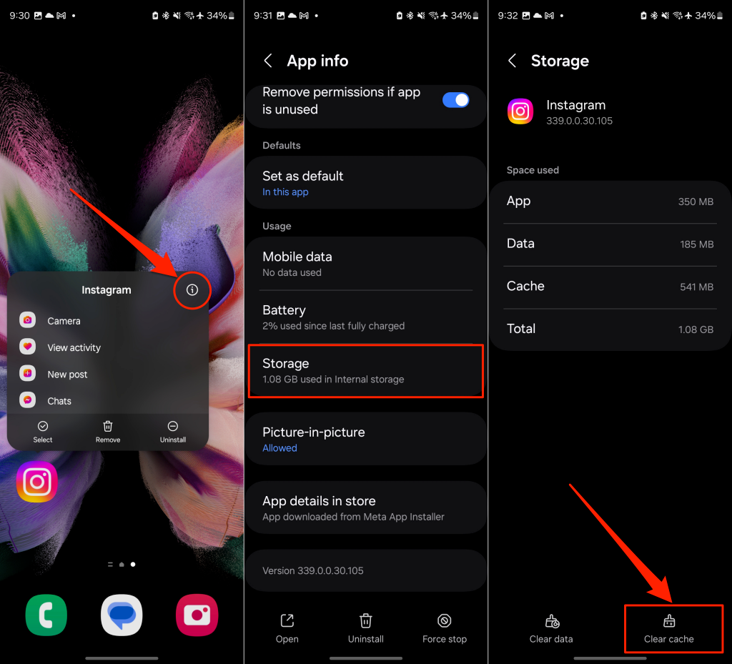 Instagramストア一時ファイル携帯電話の(キャッシュファイルと呼ばれる)アプリのパフォーマンスを高速化および強化します。これらのファイルは破損して問題になることがあり、アプリが誤動作します。アプリデータや個人設定を削除せずに、キャッシュファイルをクリアできます。