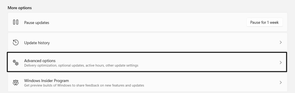 2。でWindows Updateウィンドウ、展開します高度なオプションセクション、そしてオプションの更新。