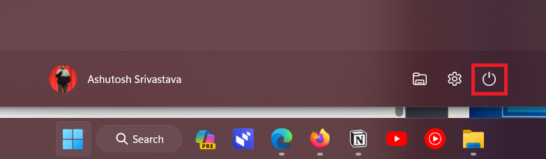 2。から力メニュー、選択します再起動Windows 11 Dellラップトップを再起動するオプション。