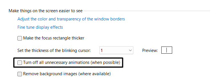 7.すべての不要なアニメーションオフをオフにするオプションをオフにします