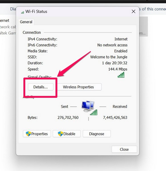 1。フォローするステップ1-43番目のソリューションから、Windows 11のコントロールパネルを介してアクティブなネットワーク接続ページを開きます。