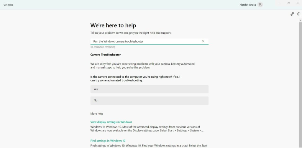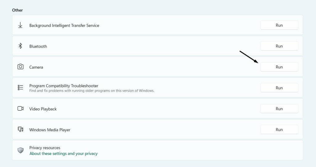 3。クリックします走る隣のボタンカメラコンピューターのトラブルシューティングプロセスを開始します。