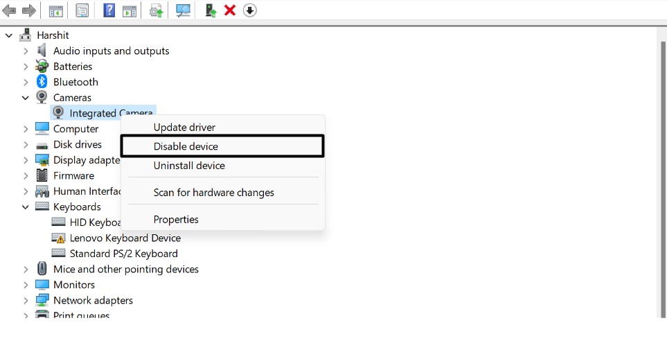 これを考慮して、内蔵カメラを無効にして、これが問題を修正するかどうかを確認することをお勧めします。以下の手順に従って、その方法を学ぶことができます。