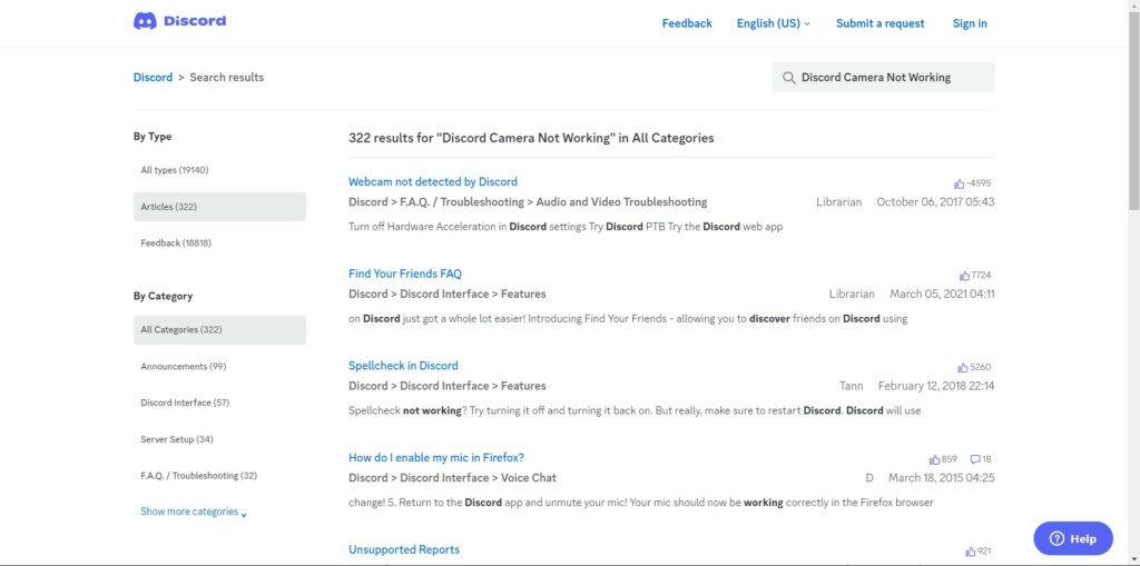 1。クリックここDiscord'sに移動しますサポートページを使用して、Discordの検索ボックスに問題を入力します。