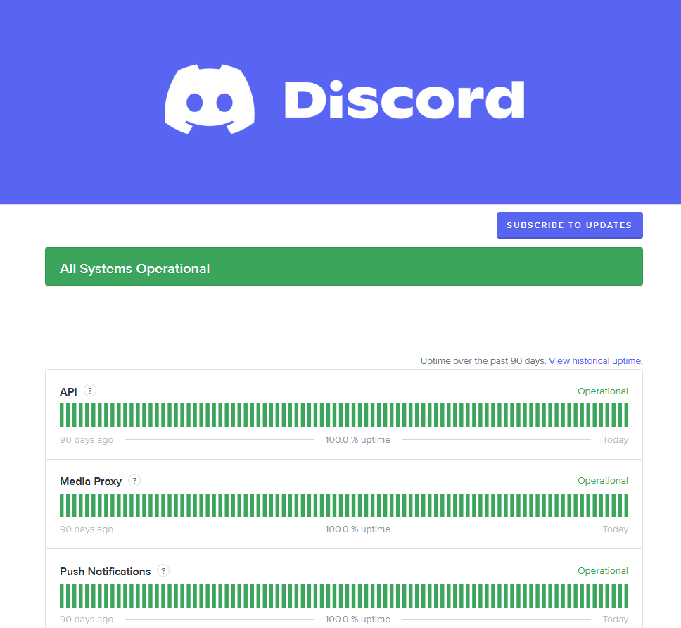 訪問することでそれを行うことができますDiscordのステータスページ現在のステータスを確認します。さらに、ページでは、システムメトリック、過去の報告されたインシデント、および報告された各インシデントのステータスも確認できます。