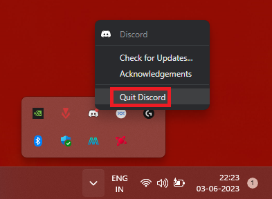 1。最初の修正で行ったように、Discordアプリケーションを終了します。