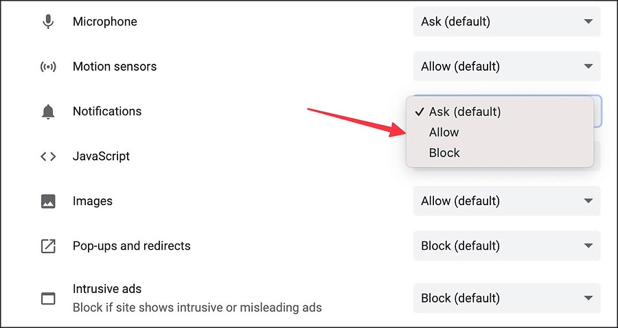 ステップ3:以下のオプションからアラートを表示することを許可します。