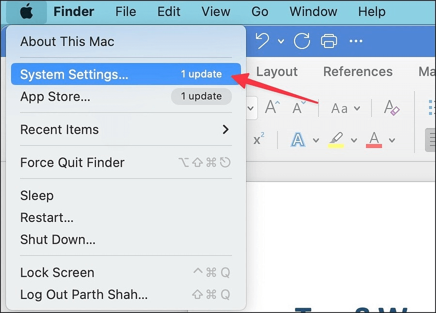 ステップ1:ナビゲーションバーのAppleアイコンをクリックして、システム設定を選択します。