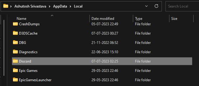 %localappdata%3。に移動します不和フォルダ。