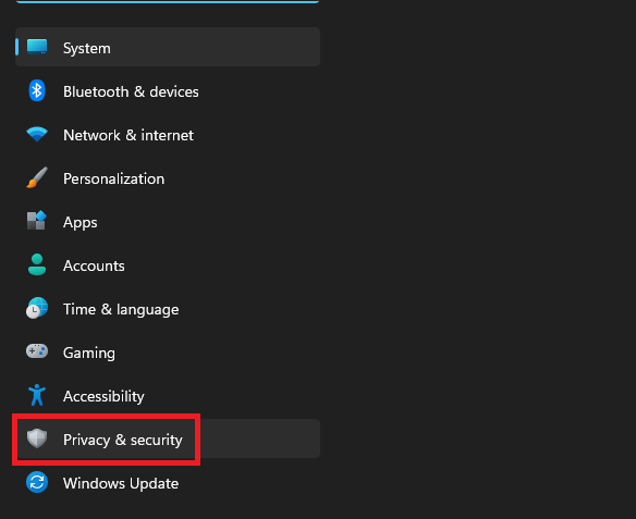 2。クリックしてくださいプライバシーとセキュリティ左パネル。