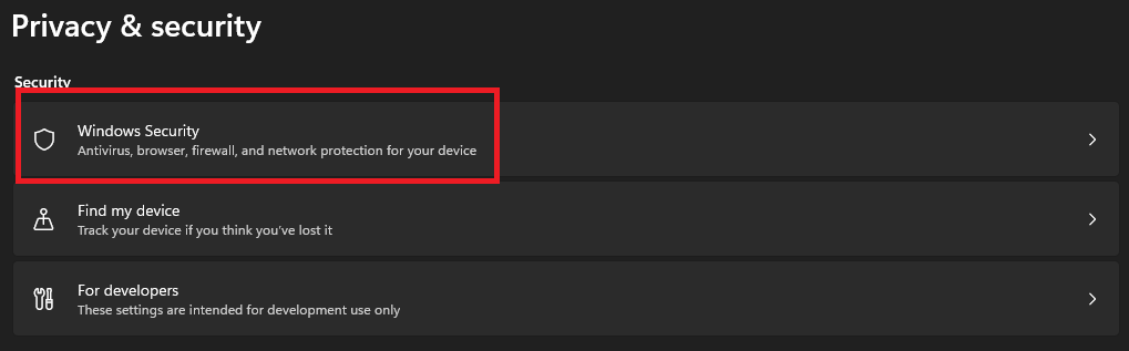 3。選択しますWindowsセキュリティ。